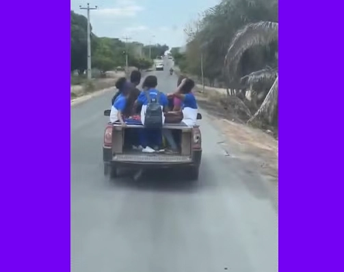 Vídeo mostra alunos sendo transportados na carroceria de picape na zona rural de Caxias; Prefeitura esclarece que veículo não pertence à frota escolar oficial.