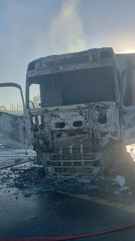 Condutor sai ileso, mas assustado, após caminhão pegar fogo próximo a posto de combustíveis na BR-316