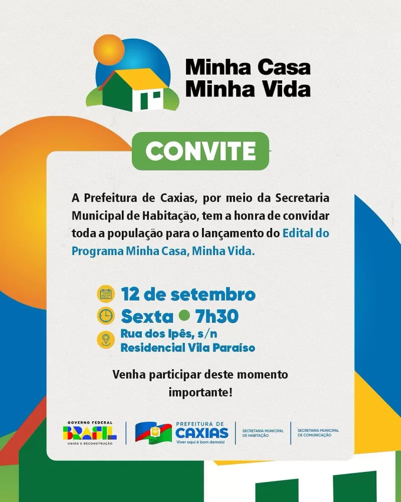 A Prefeitura de CaxiasE o Governo Federal anunciam um marco para o desenvolvimento social e urbano do município: o lançamento do Edital do Programa Minha Casa, Minha Vida 2025. O evento oficial acontecerá nesta sexta-feira, 12 de setembro, dando início a uma das maiores fases de investimento habitacional da história da cidade.