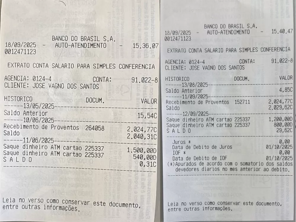 Extratos Bancários: Comprovam o recebimento regular dos valores em conta no Banco do Brasil (Agência 0124-4, Conta 91.022-8), com saques totais de R$ 2.000,00 em setembro.