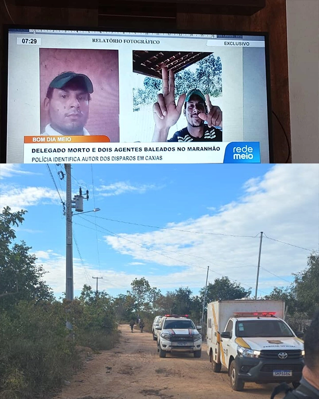 O delegado Márcio Mendes foi morto a tiros durante o cumprimento de mandado na zona rural de Caxias-MA. Dois policiais ficaram feridos e forças de segurança seguem em diligência para capturar o suspeito. O crime gerou forte comoção e mobilização das autoridades estaduais.