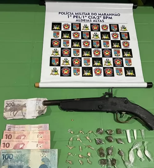 Suspeito foi flagrado com crack, maconha, cocaína, arma e nota falsa durante abordagem policial. Ele foi detido e encaminhado ao 1º DP, onde responderá por tráfico e outros crimes. A apreensão reforça o combate ao narcotráfico na região de Aldeias Altas.