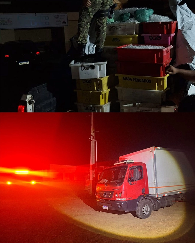 A Polícia Militar do Piauí apreendeu 5 toneladas de pescado ilegal na PI-140, com destino a Caxias (MA). A carga, vinda de Remanso (BA), não tinha documentação e foi doada a famílias carentes. Ação faz parte do combate à pesca irregular e crimes ambientais.