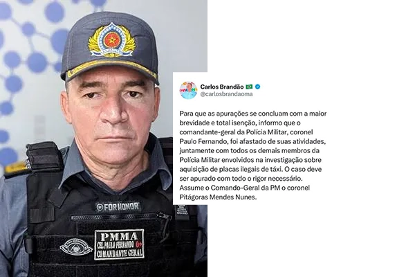 O governador Carlos Brandão exonerou o comandante da PM do Maranhão, coronel Paulo Fernando, após denúncias de envolvimento em um esquema de alvarás falsos para táxis. O coronel Pitágoras Mendes Nunes assume o comando em meio à crise.