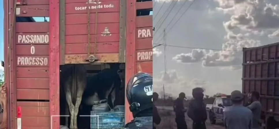 Polícia apreende caminhão com 20 jumentos para abate ilegal no Maranhão; carne seria vendida como bovina no PIauí.