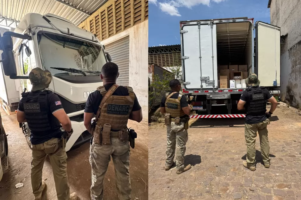 Caminhão roubado em Caxias foi localizado no Piauí já descaracterizado com nova pintura. Operação conjunta das polícias civis dos dois estados recuperou também carga de defensivos agrícolas.